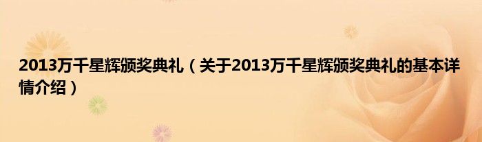 本文关于2013万千星辉颁奖典礼的基本详情介绍就讲解完毕,希望对大家有所帮助。