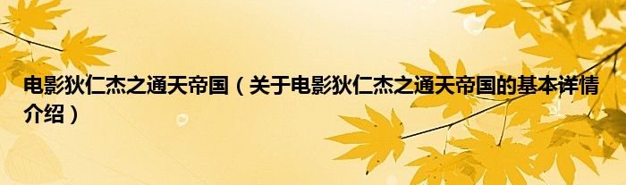 本文关于电影狄仁杰之通天帝国的基本详情介绍就讲解完毕,希望对大家有所帮助。