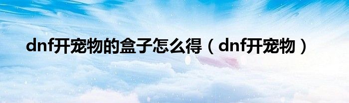 dnf开宠物的盒子怎么得(dnf开宠物)