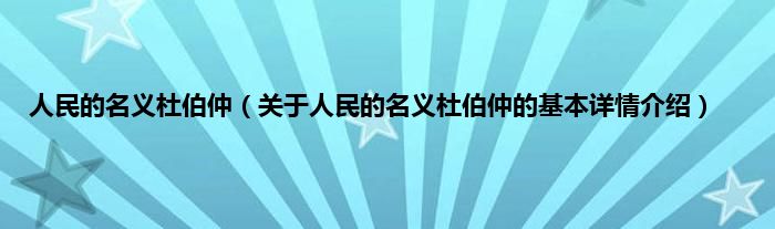 本文关于人民的名义杜伯仲的基本详情介绍就讲解完毕,希望对大家有所帮助。
