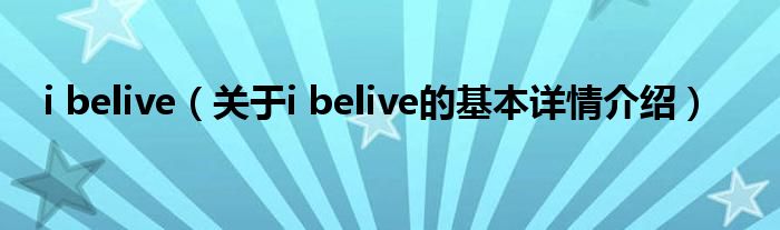本文关于i belive的基本详情介绍就讲解完毕,希望对大家有所帮助。