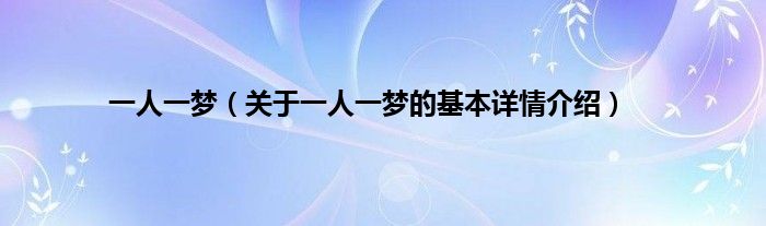 本文关于一人一梦的基本详情介绍就讲解完毕,希望对大家有所帮助。