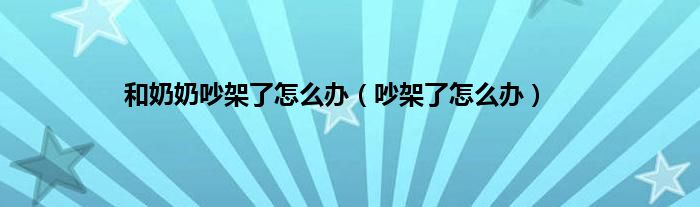 以上就是【和奶奶吵架了怎么办,吵架了怎么办】相关内容。