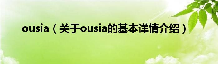 本文关于ousia的基本详情介绍就讲解完毕,希望对大家有所帮助。