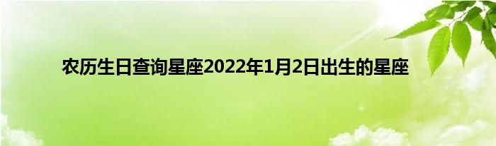 大家好,小问来为大家解答以上问题。农历生日查询星座2022年1月2日出生的星座这个很多人还不知道,现在让我们一起来看看吧!