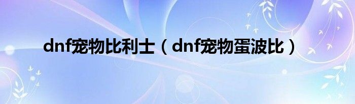 大家好,小问来为大家解答以上问题。dnf宠物比利士,dnf宠物蛋波比这个很多人还不知道,现在让我们一起来看看吧!