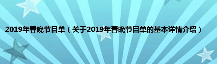 本文关于2019年春晚节目单的基本详情介绍就讲解完毕,希望对大家有所帮助。