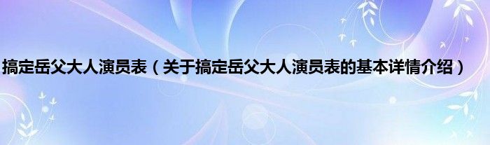 本文关于搞定岳父大人演员表的基本详情介绍就讲解完毕,希望对大家有所帮助。