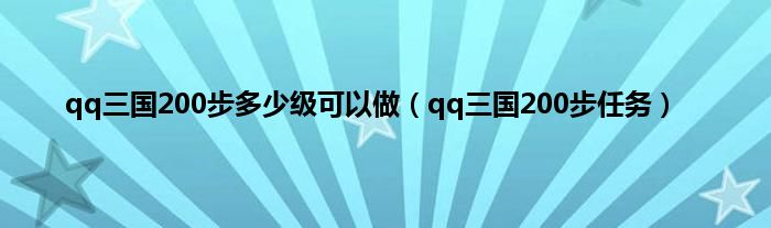 大家好,小问来为大家解答以上问题。qq三国200步多少级可以做,qq三国200步任务这个很多人还不知道,现在让我们一起来看看吧!