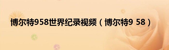 大家好,小问来为大家解答以上问题。博尔特958世界纪录视频,博尔特9 58这个很多人还不知道,现在让我们一起来看看吧!