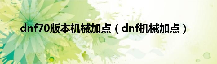 以上就是【dnf70版本机械加点,dnf机械加点】相关内容。