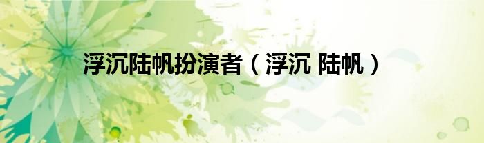 以上就是【浮沉陆帆扮演者,浮沉 陆帆】相关内容。