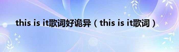大家好,小问来为大家解答以上问题。this is it歌词好诡异,this is it歌词这个很多人还不知道,现在让我们一起来看看吧!