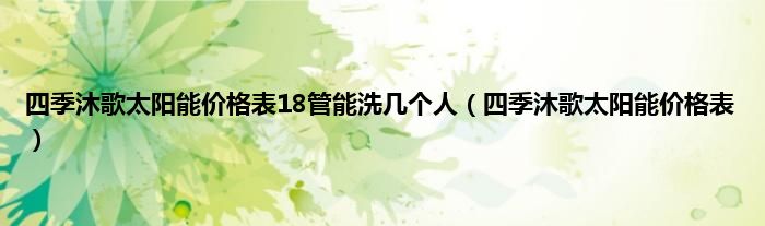 大家好,小问来为大家解答以上问题。四季沐歌太阳能价格表18管能洗几个人,四季沐歌太阳能价格表这个很多人还不知道,现在让我们一起来看看吧!