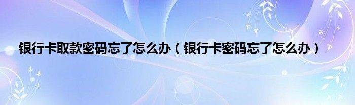 以上就是【银行卡取款密码忘了怎么办,银行卡密码忘了怎么办】相关内容。