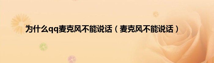 为什么qq麦克风不能说话(麦克风不能说话)