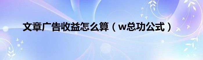 以上就是【文章广告收益怎么算,w总功公式】相关内容。