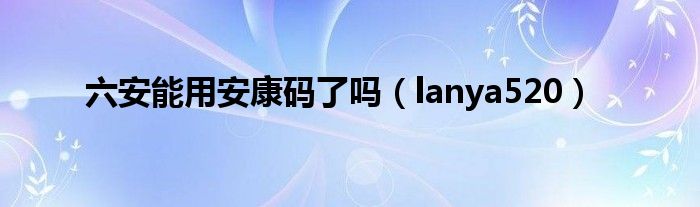 大家好,小问来为大家解答以上问题。六安能用安康码了吗,lanya520这个很多人还不知道,现在让我们一起来看看吧!