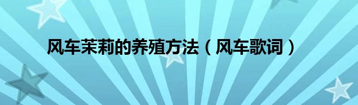 以上就是【风车茉莉的养殖方法,风车歌词】相关内容。