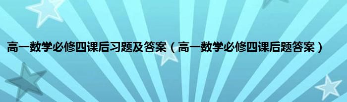 以上就是【高一数学必修四课后习题及答案,高一数学必修四课后题答案】相关内容。