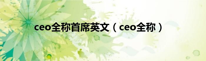 大家好,小问来为大家解答以上问题。ceo全称首席英文,ceo全称这个很多人还不知道,现在让我们一起来看看吧!