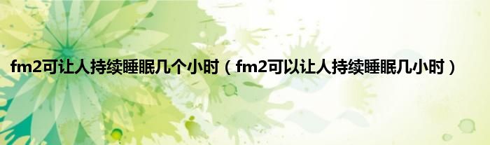 以上就是【fm2可让人持续睡眠几个小时,fm2可以让人持续睡眠几小时】相关内容。