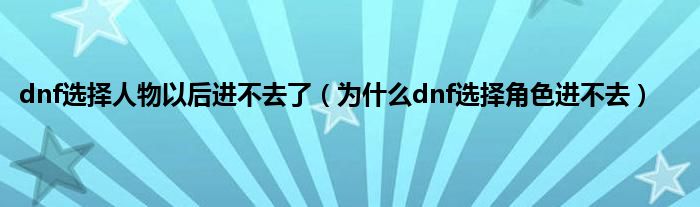 dnf选择人物以后进不去了(为什么dnf选择角色进不去)