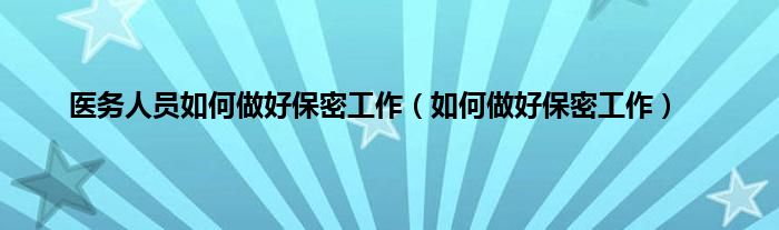 以上就是【医务人员如何做好保密工作,如何做好保密工作】相关内容。