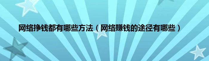 以上就是【网络挣钱都有哪些方法,网络赚钱的途径有哪些】相关内容。