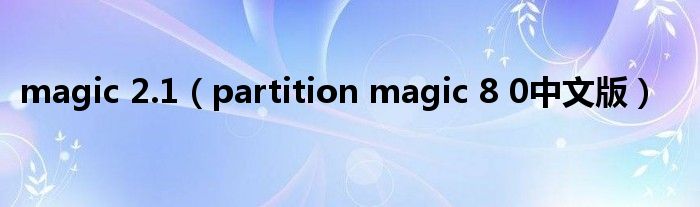 大家好,小问来为大家解答以上问题。magic 2.1,partition magic 8 0中文版这个很多人还不知道,现在让我们一起来看看吧!
