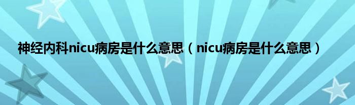 以上就是【神经内科nicu病房是什么意思,nicu病房是什么意思】相关内容。