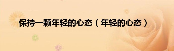大家好,小问来为大家解答以上问题。保持一颗年轻的心态,年轻的心态这个很多人还不知道,现在让我们一起来看看吧!