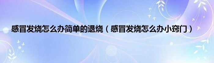 大家好,小问来为大家解答以上问题。感冒发烧怎么办简单的退烧,感冒发烧怎么办小窍门这个很多人还不知道,现在让我们一起来看看吧!