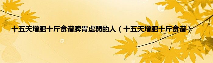 大家好,小问来为大家解答以上问题。十五天增肥十斤食谱脾胃虚弱的人,十五天增肥十斤食谱这个很多人还不知道,现在让我们一起来看看吧!