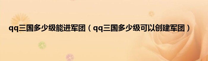 大家好,小问来为大家解答以上问题。qq三国多少级能进军团,qq三国多少级可以创建军团这个很多人还不知道,现在让我们一起来看看吧!
