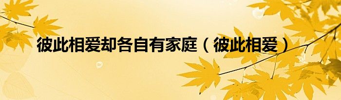 大家好,小问来为大家解答以上问题。彼此相爱却各自有家庭,彼此相爱这个很多人还不知道,现在让我们一起来看看吧!