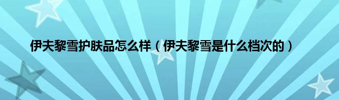 大家好,小问来为大家解答以上问题。伊夫黎雪护肤品怎么样,伊夫黎雪是什么档次的这个很多人还不知道,现在让我们一起来看看吧!