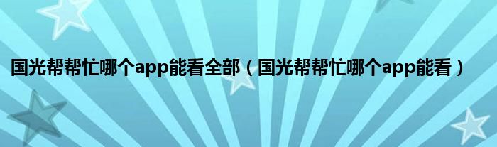 以上就是【国光帮帮忙哪个app能看全部,国光帮帮忙哪个app能看】相关内容。