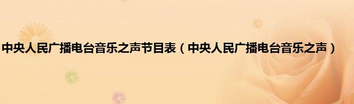 大家好,小问来为大家解答以上问题。中央人民广播电台音乐之声节目表,中央人民广播电台音乐之声这个很多人还不知道,现在让我们一起来看看吧!