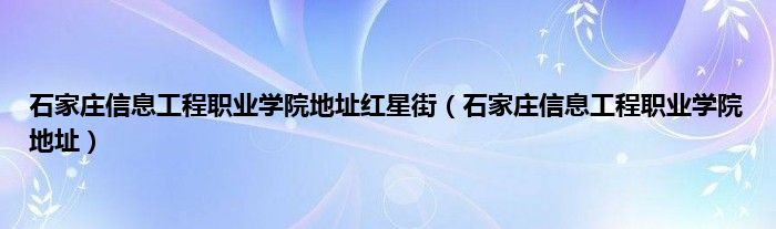 石家庄信息工程职业学院地址红星街(石家庄信息工程职业学院地址)
