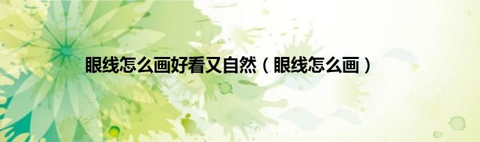 眼线怎么画好看又自然(眼线怎么画)
