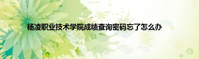 以上就是【杨凌职业技术学院成绩查询密码忘了怎么办】相关内容。