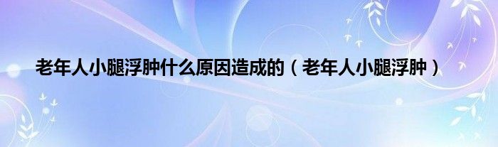 以上就是【老年人小腿浮肿什么原因造成的,老年人小腿浮肿】相关内容。