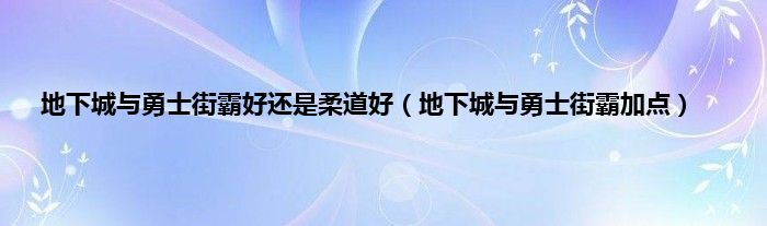 以上就是【地下城与勇士街霸好还是柔道好,地下城与勇士街霸加点】相关内容。