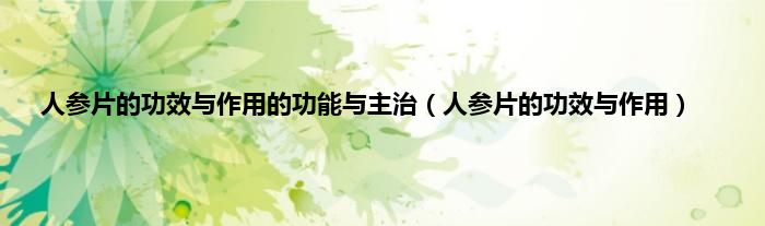 本文,人参片的功效与作用的功能与主治,人参片的功效与作用到此就分享完毕,希望对大家有所帮助。