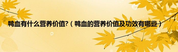 本文,鸭血有什么营养价值?,鸭血的营养价值及功效有哪些到此就分享完毕,希望对大家有所帮助。