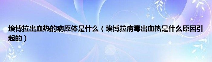 大家好,埃博拉出血热的病原体是什么,埃博拉病毒出血热是什么原因引起的很多人还不知道,现在让我们一起来看看吧!