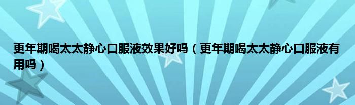 本文,更年期喝太太静心口服液效果好吗,更年期喝太太静心口服液有用吗到此就分享完毕,希望对大家有所帮助。