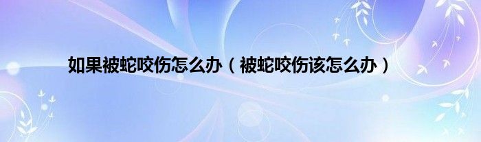 本文,如果被蛇咬伤怎么办,被蛇咬伤该怎么办到此就分享完毕,希望对大家有所帮助。