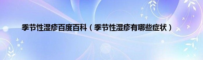 本文,季节性湿疹百度百科,季节性湿疹有哪些症状到此就分享完毕,希望对大家有所帮助。